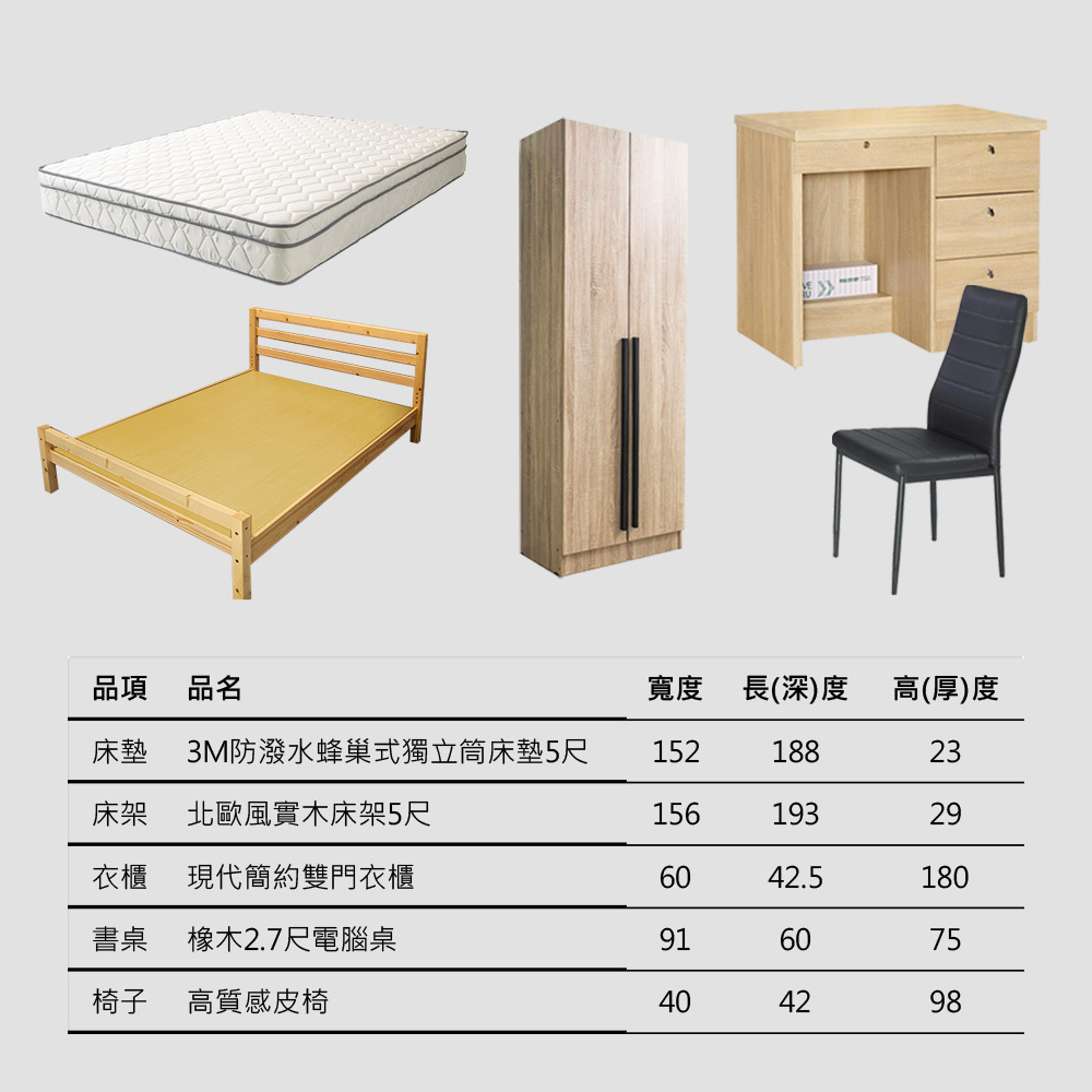 床墊: 3M防潑水蜂巢式獨立筒床墊(5尺)