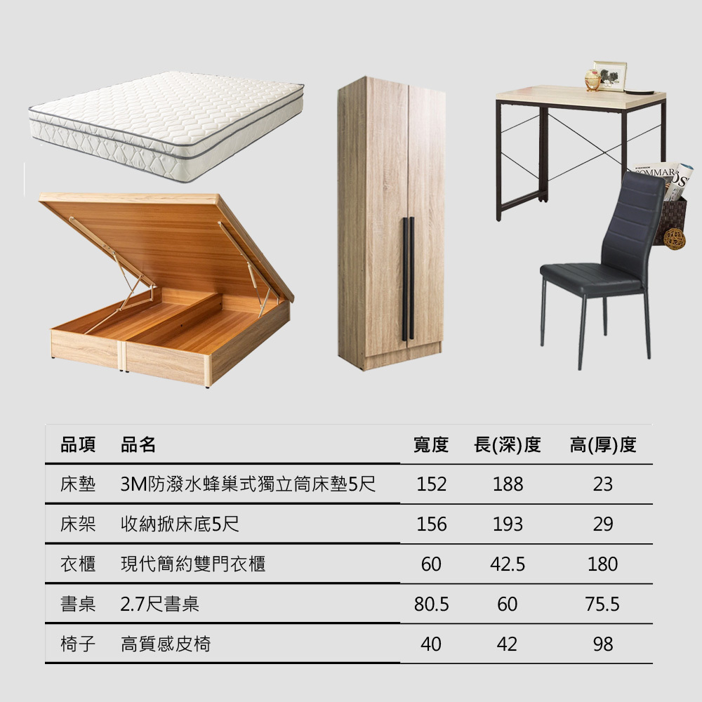 床墊: 3M防潑水蜂巢式獨立筒床墊(5尺)