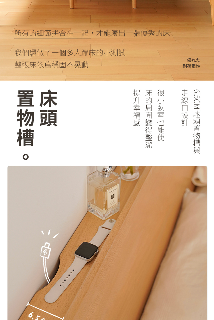 出色的承重 床頭置物槽