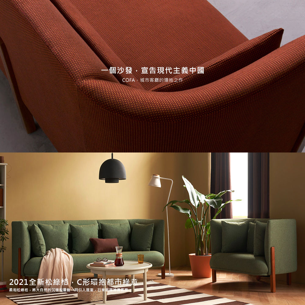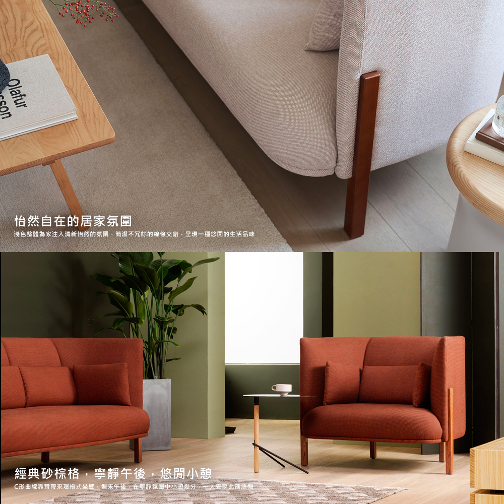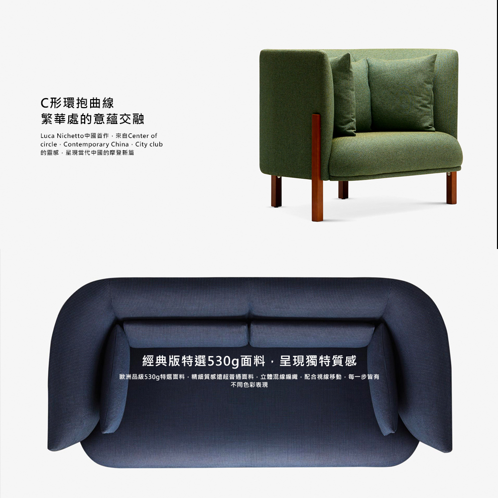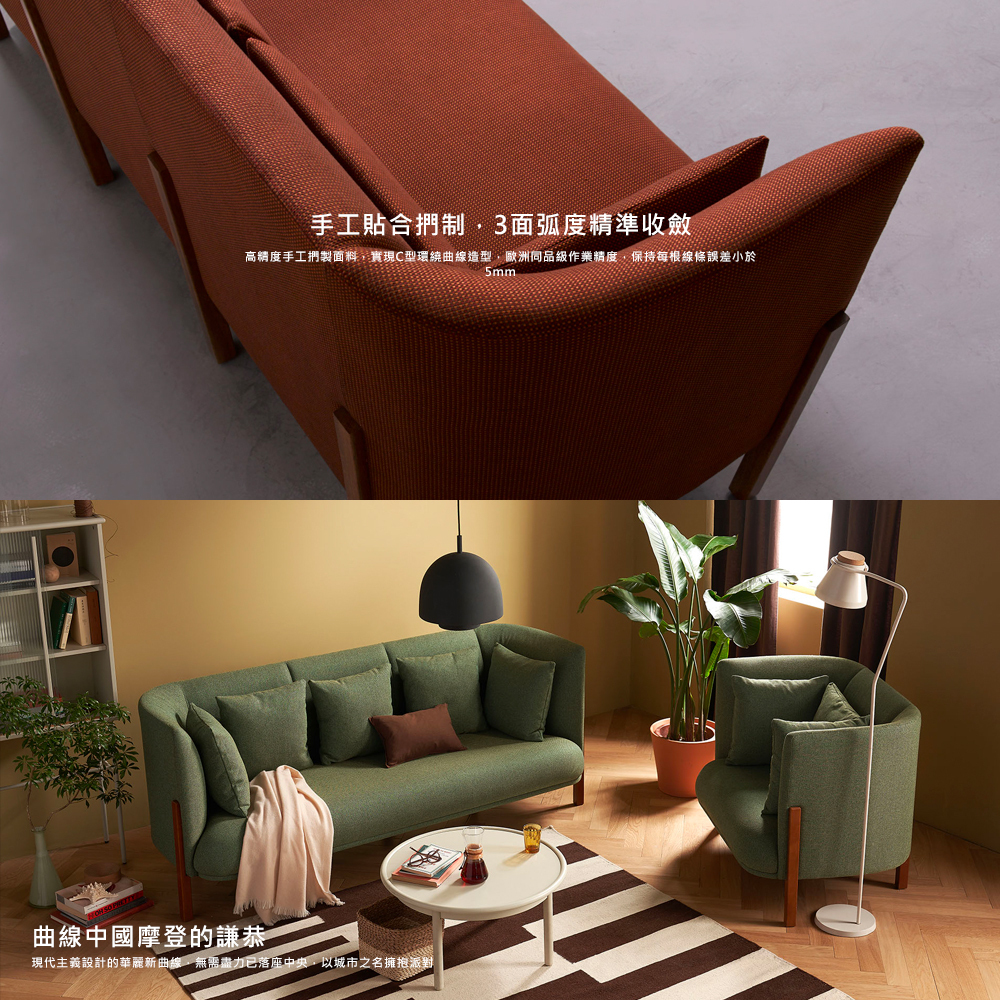 C形環抱曲線,纖細沙發腿,不露一顆鉚釘