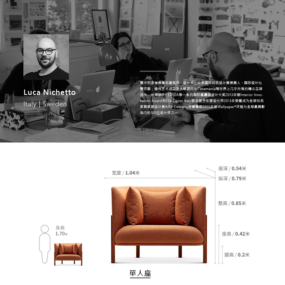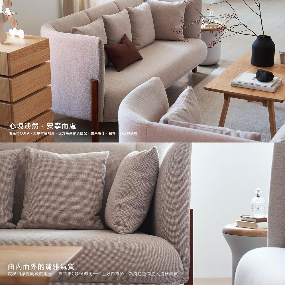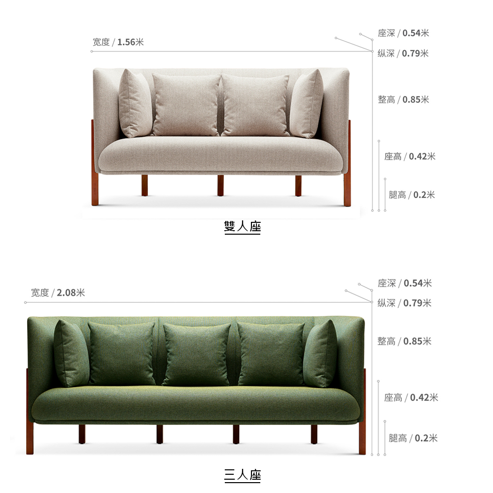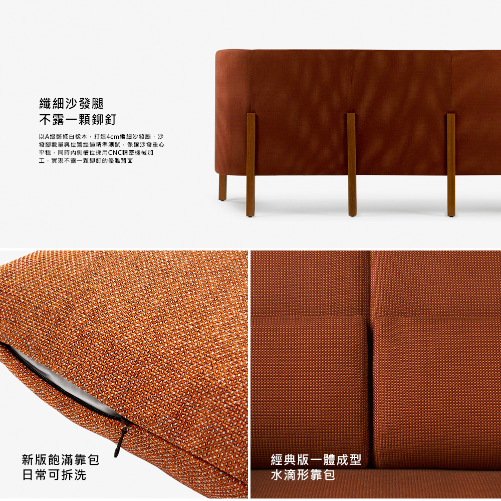 C形環抱曲線,纖細沙發腿,不露一顆鉚釘