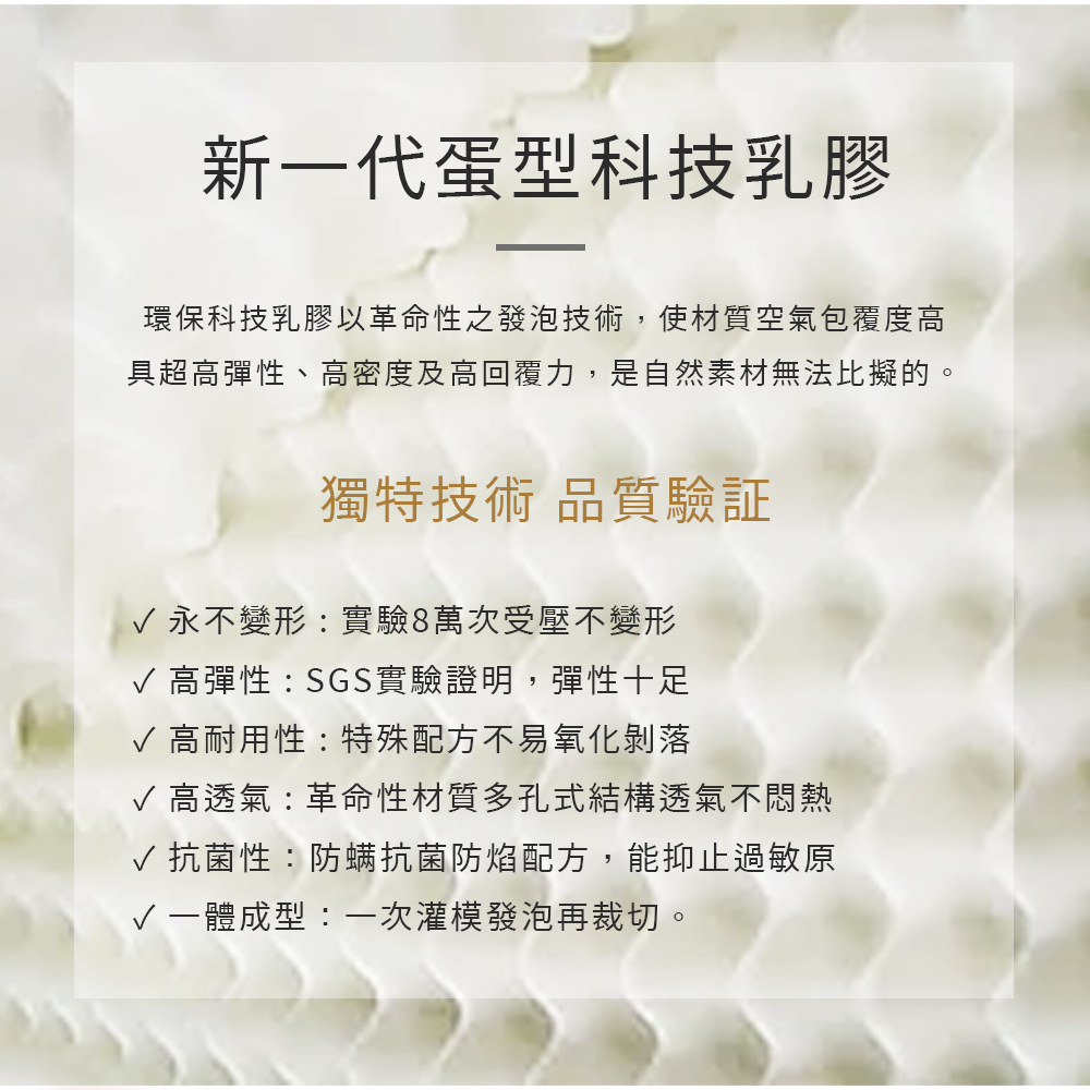 ✔新一代蛋型科技乳膠,抗菌防蟎更耐用