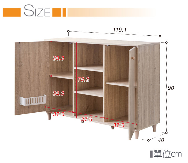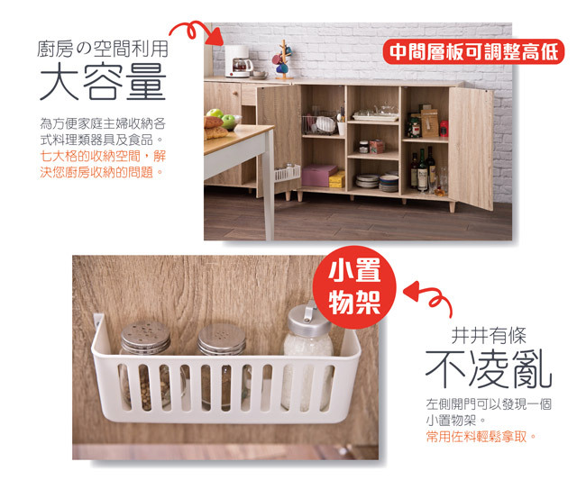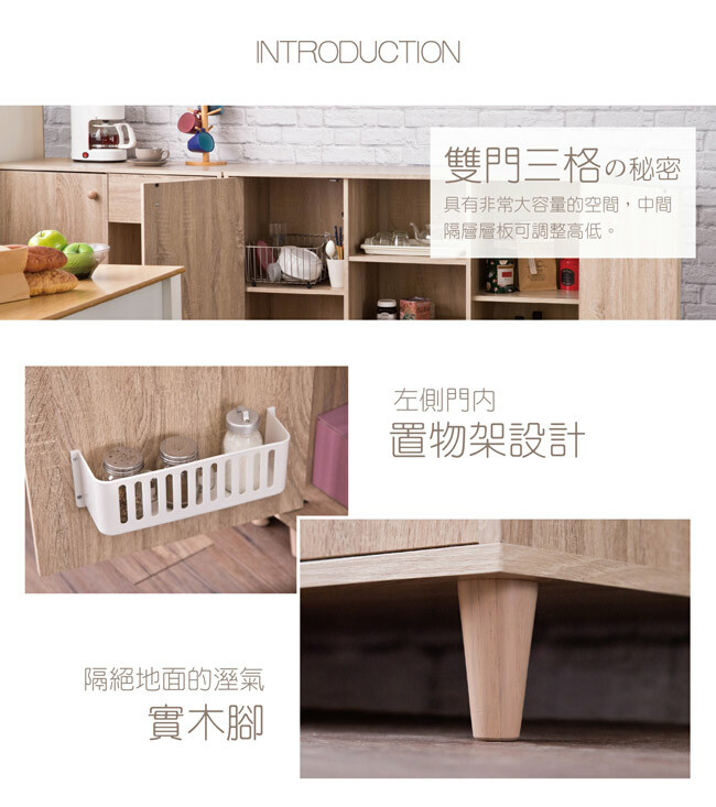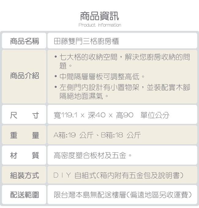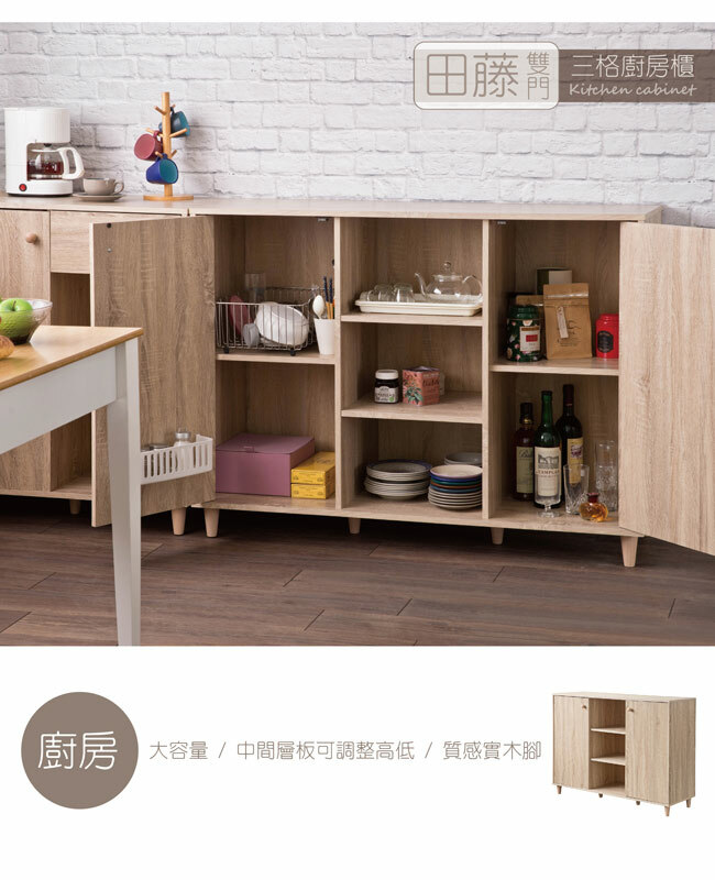 田藤雙門三格廚房櫃/廚櫃/餐廚櫃/碗盤櫃