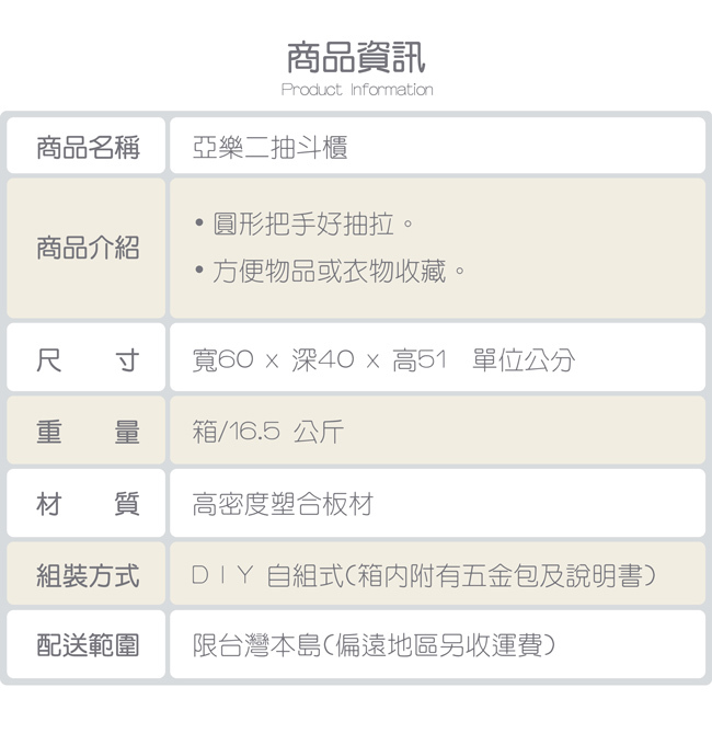 • 配合政府一例一休政策,各家貨運配送時間至17點止,假日及國定假日無配送服務,敬請包含,如商品有急需建議提早下單