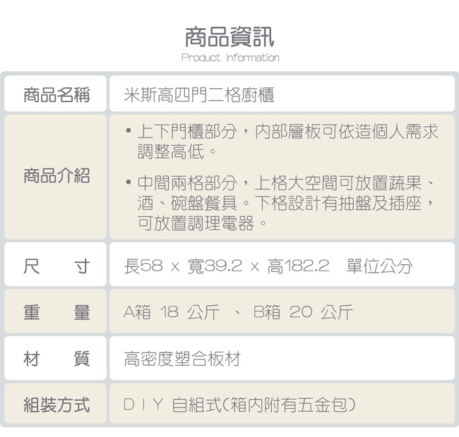 米斯高四門二格廚櫃