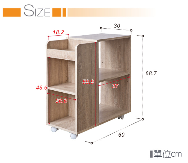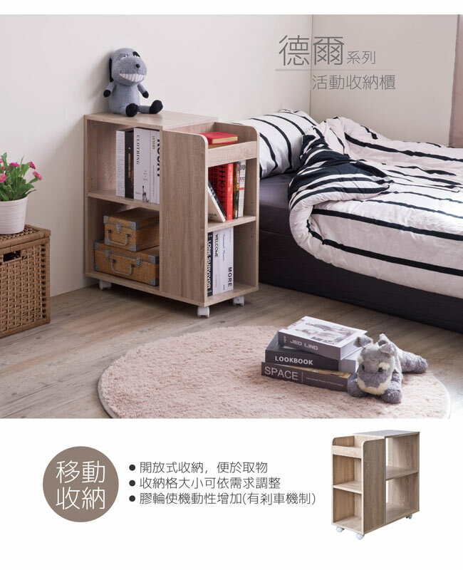德爾活動收納櫃/邊櫃/活動櫃書櫃-淺橡木