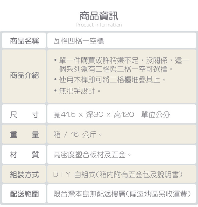 • 配合政府一例一休政策,各家貨運配送時間至17點止,假日及國定假日無配送服務,敬請包含,如商品有急需建議提早下單
