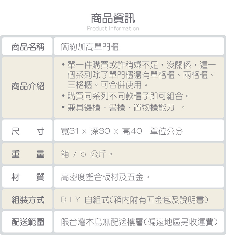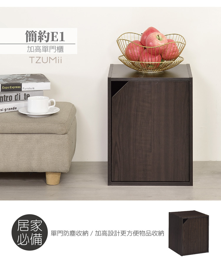 簡約加高單門櫃-胡桃木色