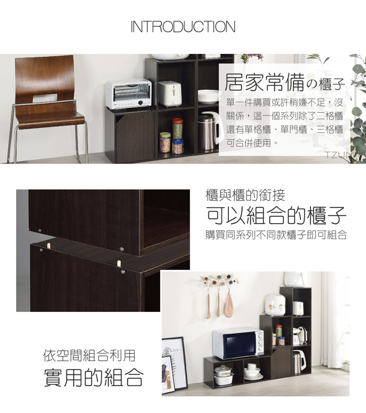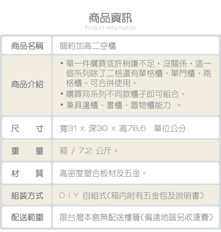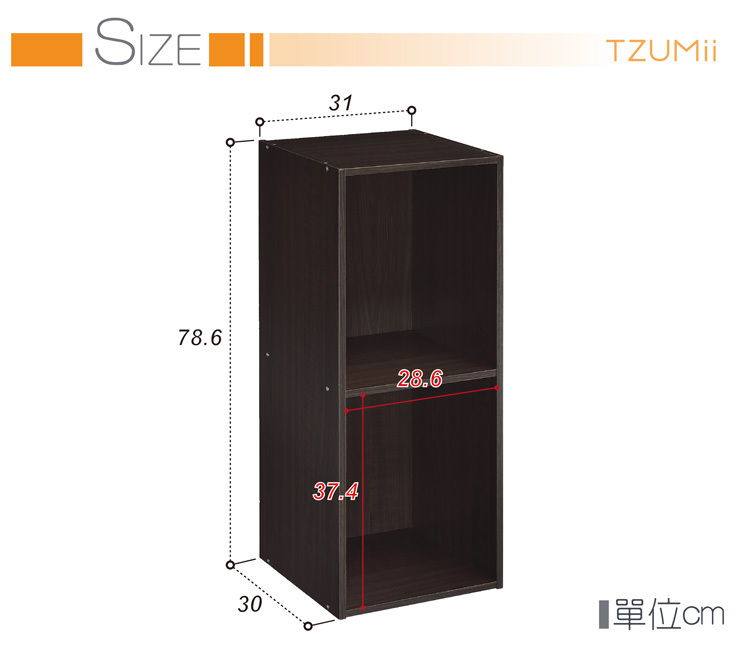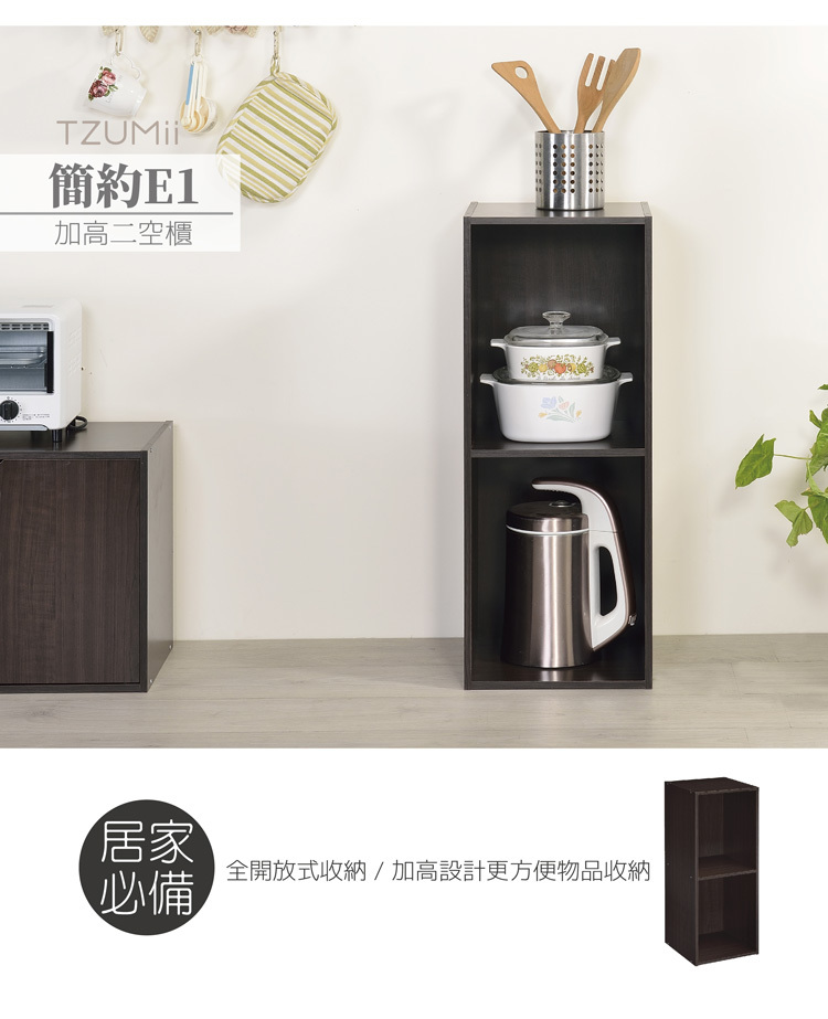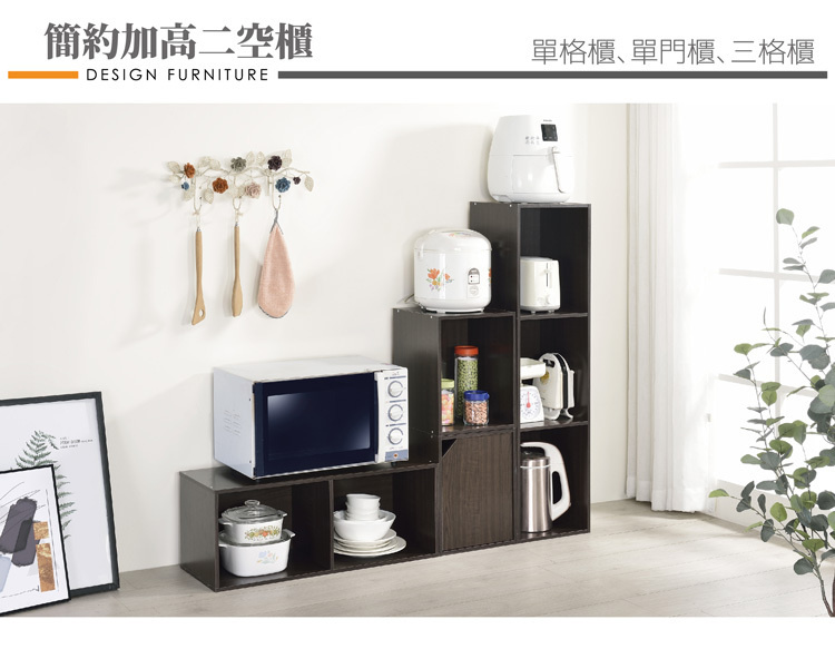 簡約加高二空櫃收納櫃/置物櫃/二格櫃-胡桃木色