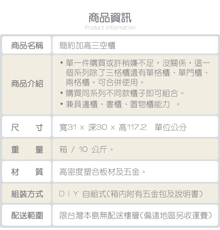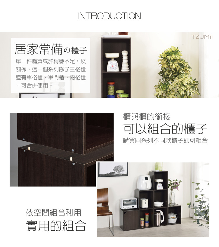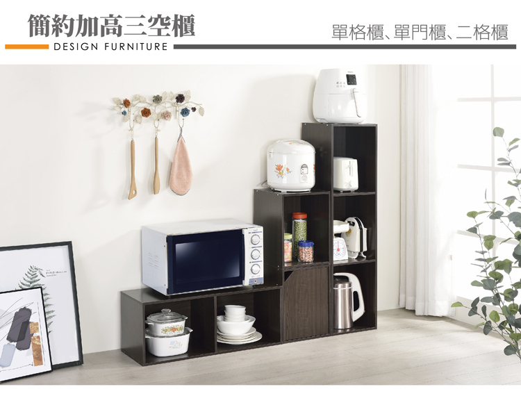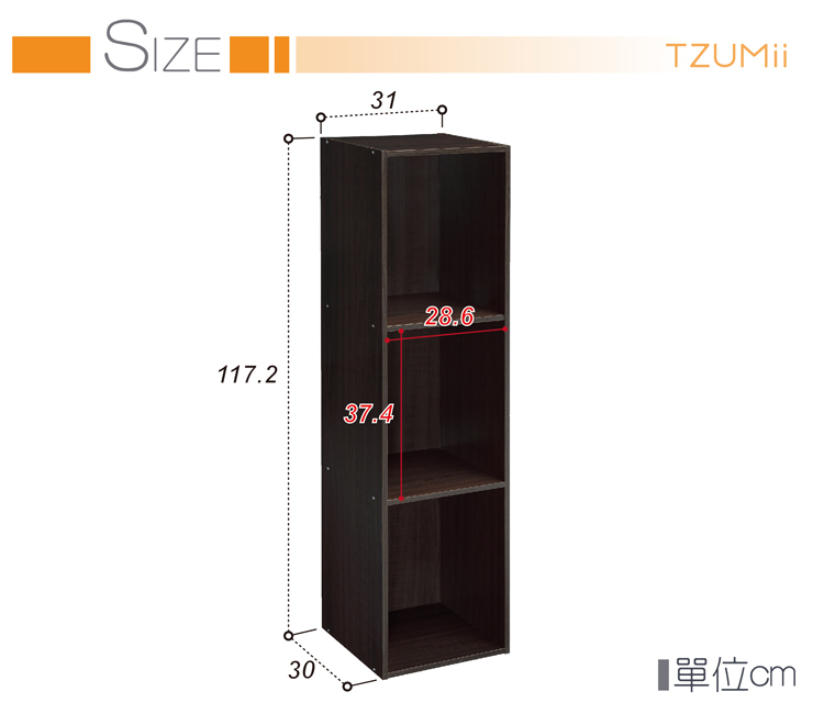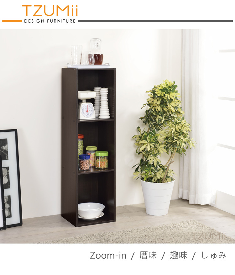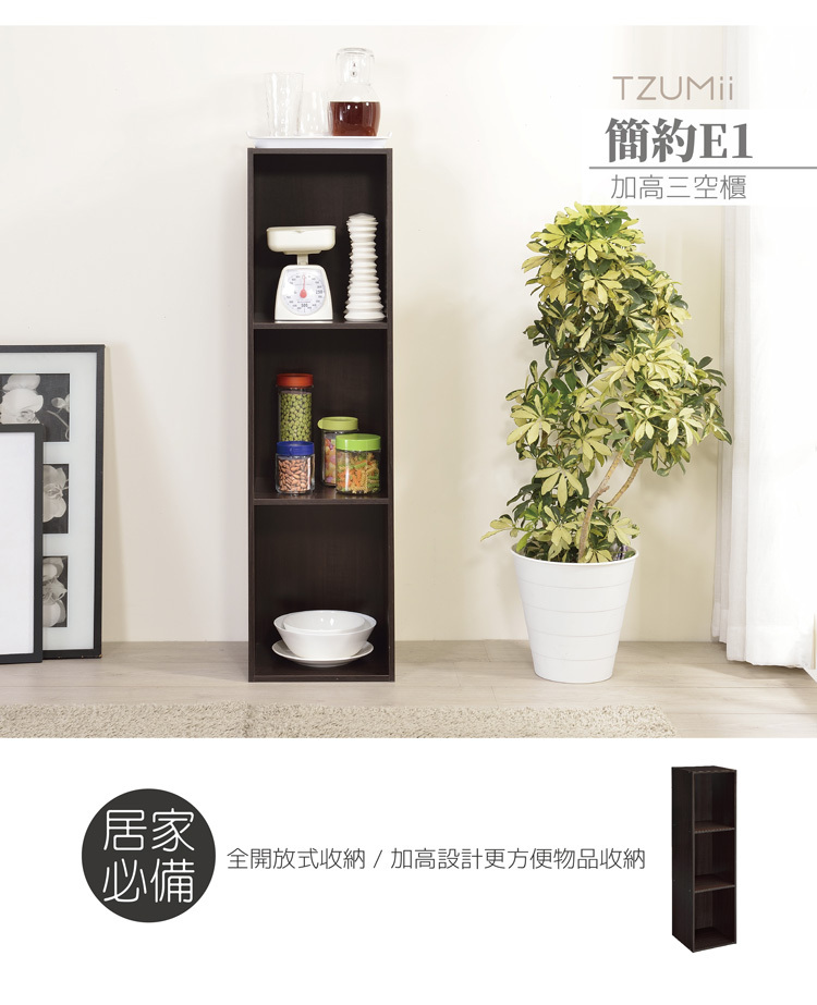 簡約加高三空櫃/收納櫃/置物櫃/三格櫃-胡桃木色