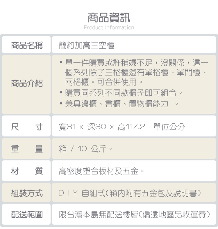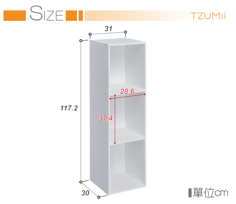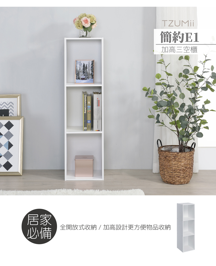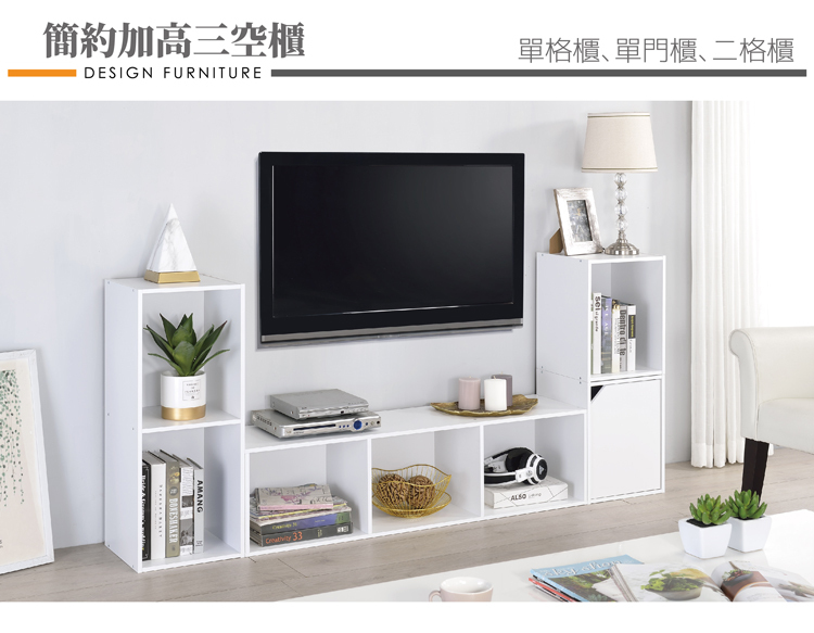 簡約加高三空櫃/收納櫃/置物櫃/三格櫃-白色