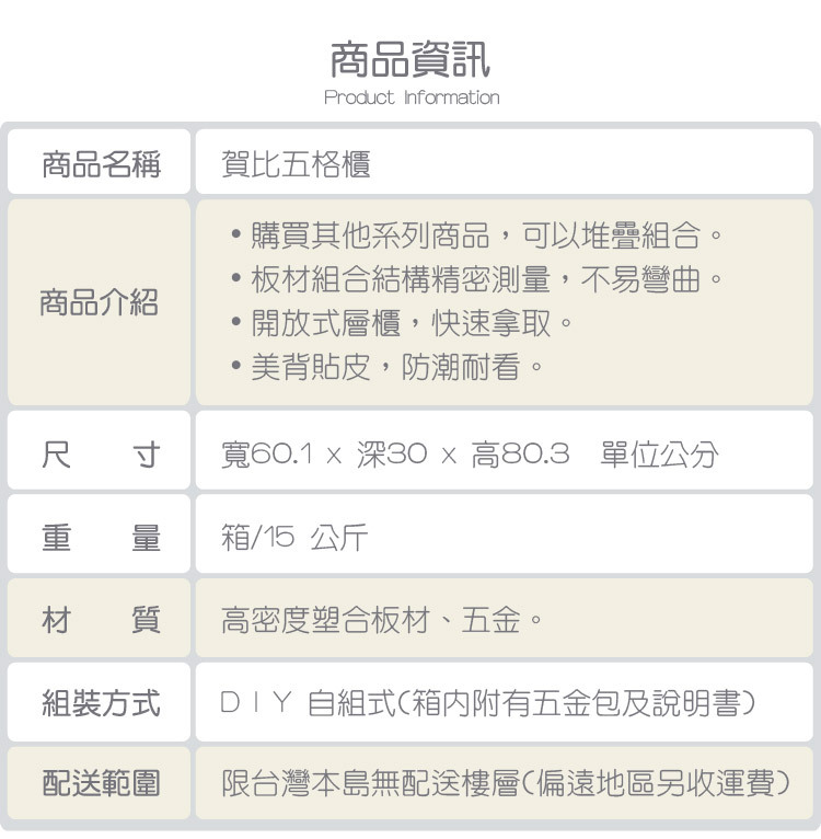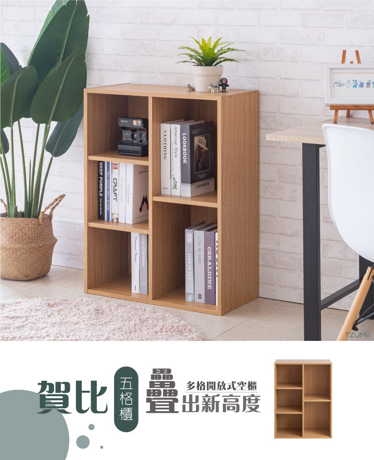 賀比五格櫃/收納櫃/置物櫃/多格櫃/開放式書櫃-原木色