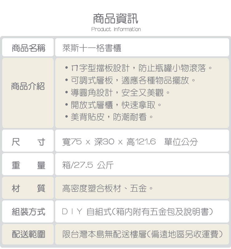 萊斯十一格櫃/書櫃/收納櫃/置物櫃/多格櫃/開放式書櫃-淺橡木色