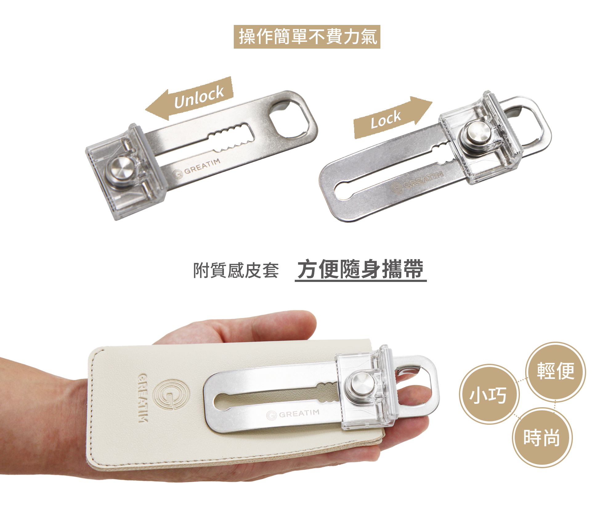 隨身安全門扣可以輕鬆攜帶,在旅途中的每一處都能保持安全和舒適