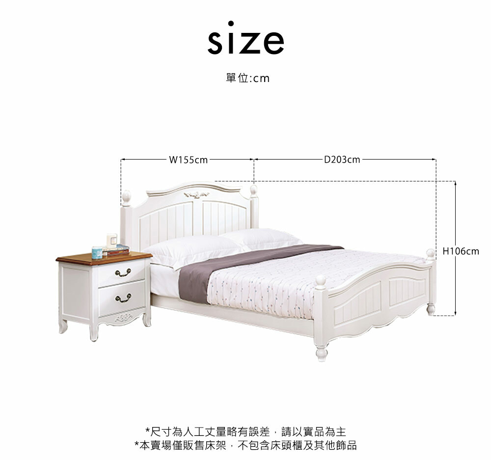 材質: 南洋檜木實木腳柱側板木心板,正面高級MDF全包覆材質白色優耐坦耐黃變噴漆處理床臺: 實木框架腳柱+全實木床板床臺臺商製造,其餘臺灣製造