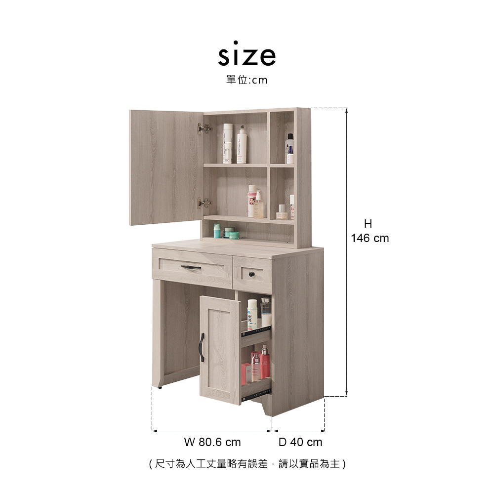 材質: 正面、檯面、側板、抽牆採用環保木心板表面處理採用木紋耐磨,猶如實木質感抽屜採用台灣鋼珠滑軌,門片採用油壓緩衝鉸鍊背板採用美背處理