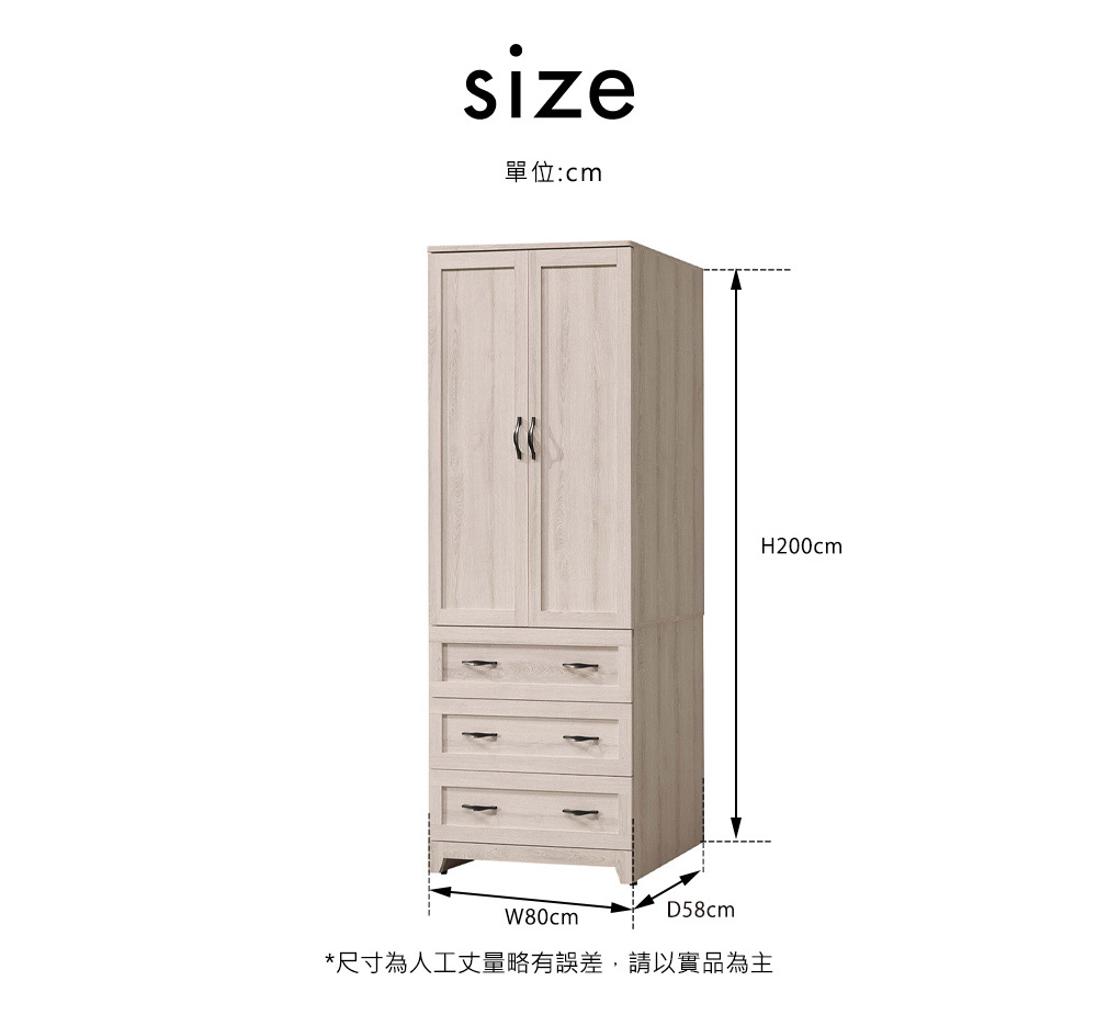 尺寸: 寬80x深58x高200cm