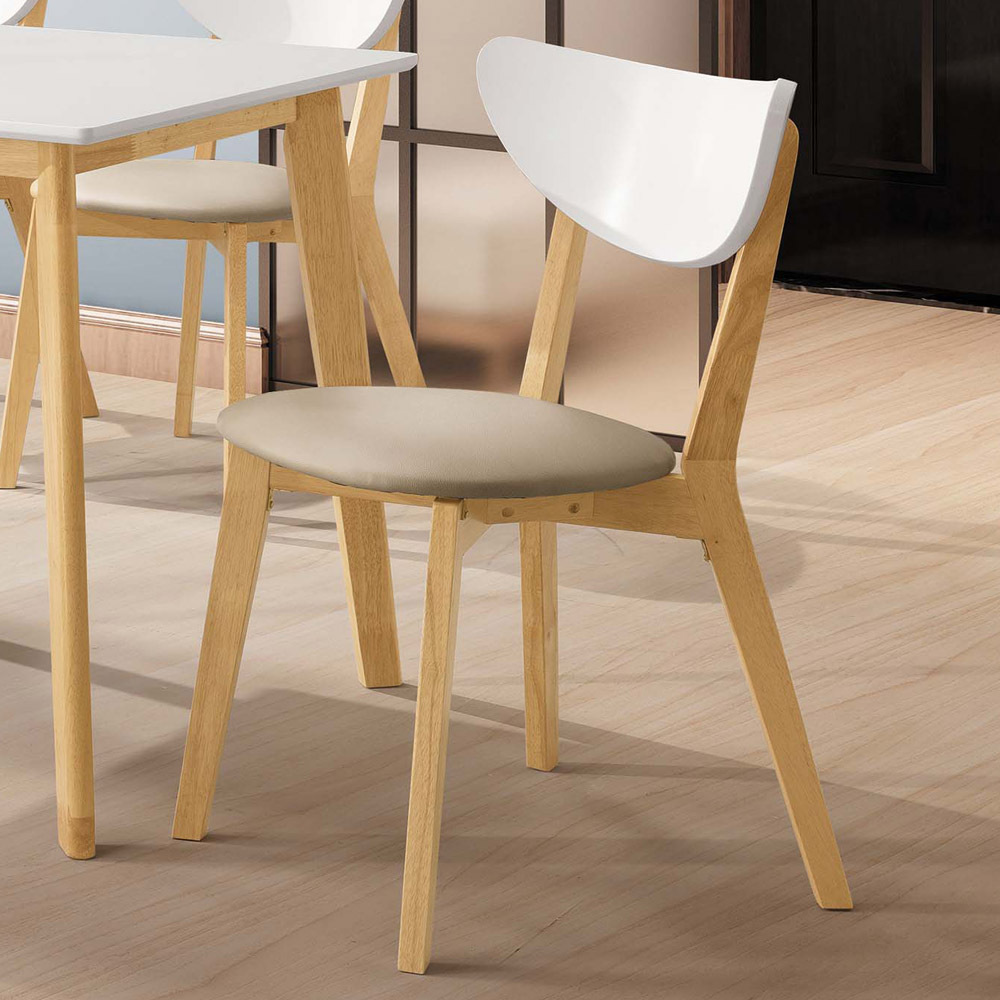 原木雙色淺咖啡皮餐椅(RT681原木+白/皮)