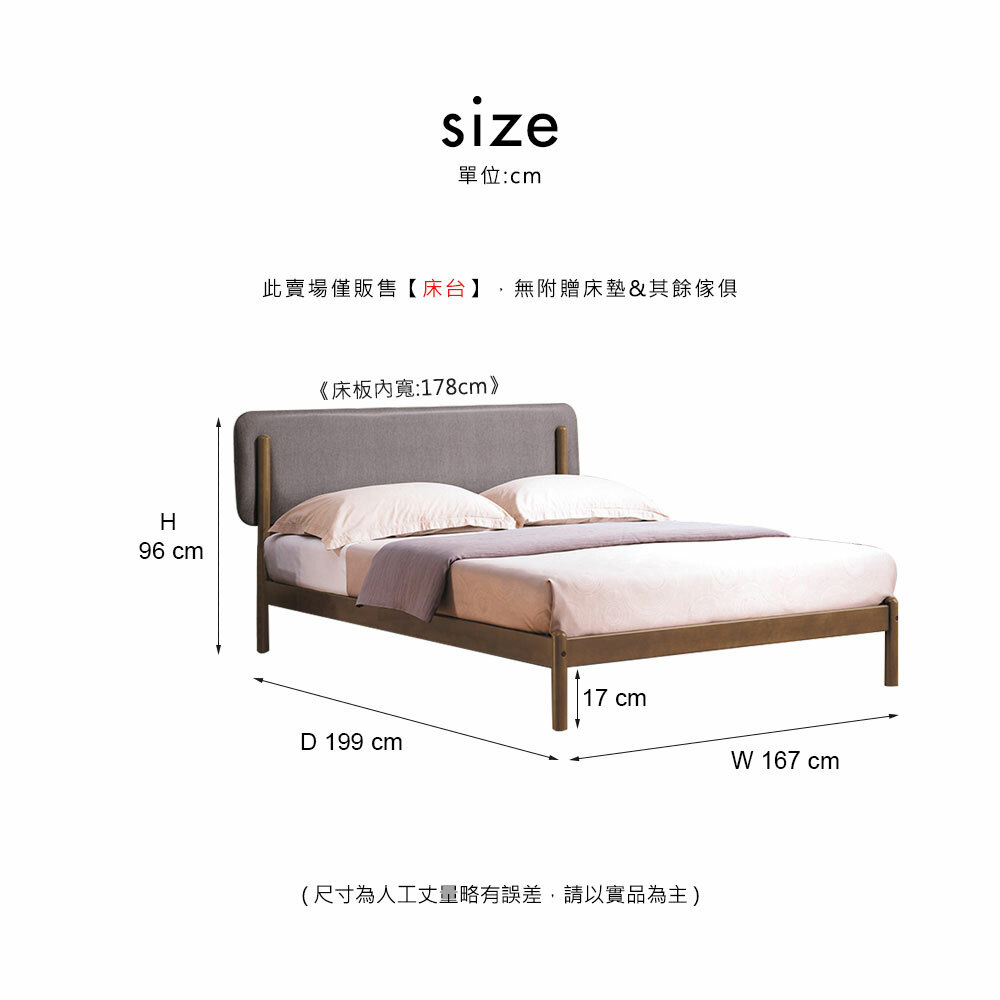 羅德淺胡桃5尺床台【雙人床台/5尺雙人床台】