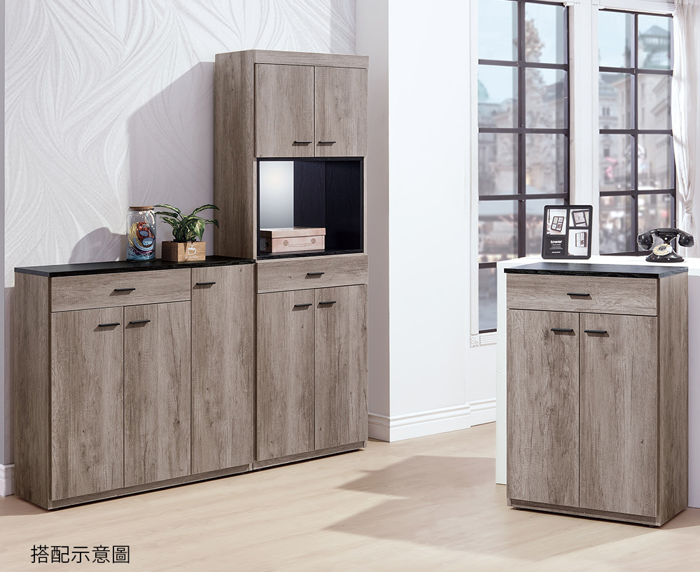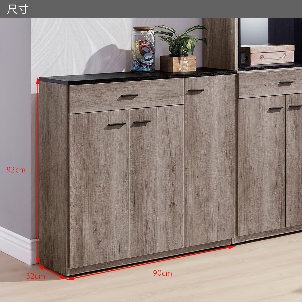 材質: 正面、檯面、側版木心板製耐磨木紋塗裝黑色金屬把手門片採用油壓式鉸鍊