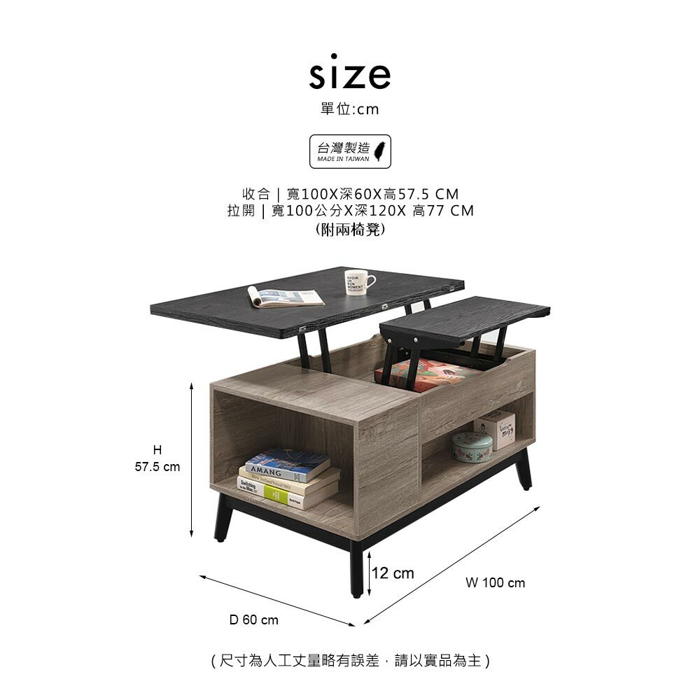 尺寸: 收合: 寬100x深60x高57.5cm展開: 寬100x深120x高77cm(