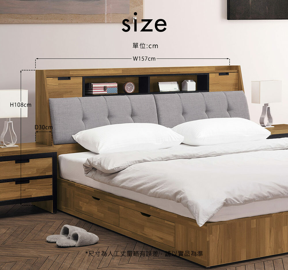 奧斯汀5尺床頭箱尺寸寬157x深30x高108cm
