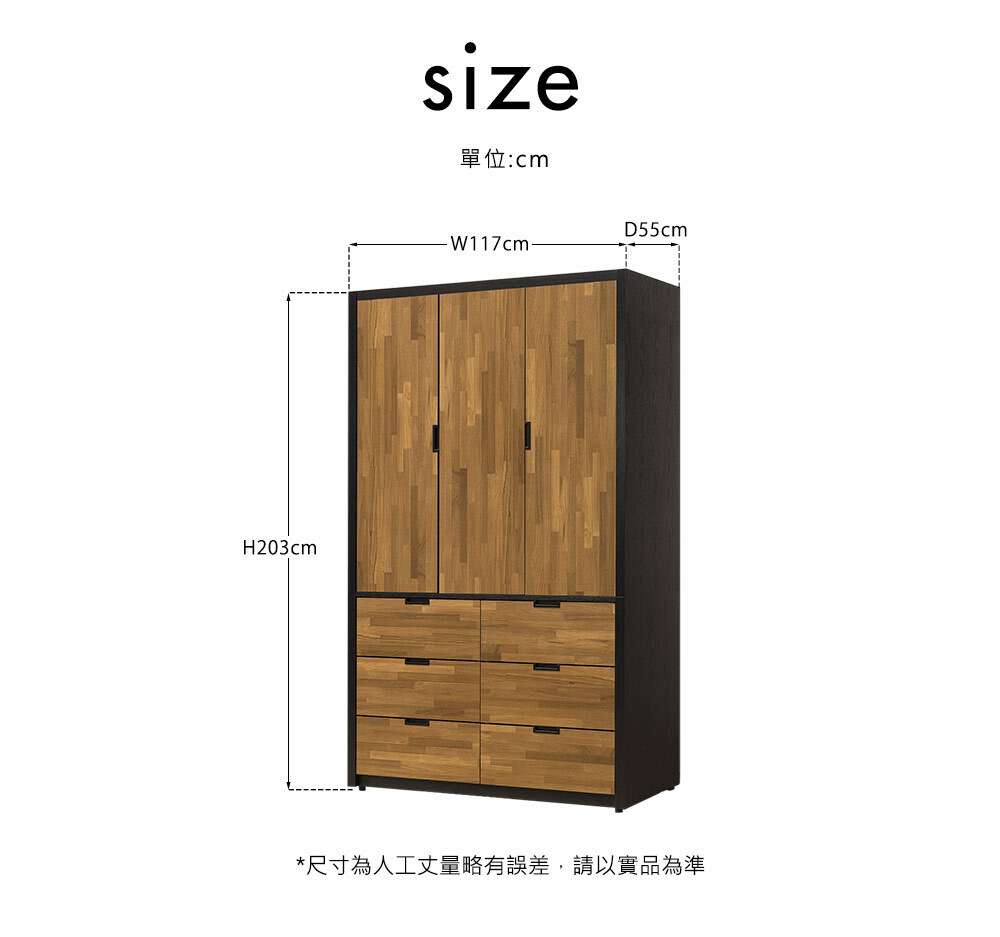 奧斯汀4x7尺衣櫃尺寸寬117x深55x高203cm