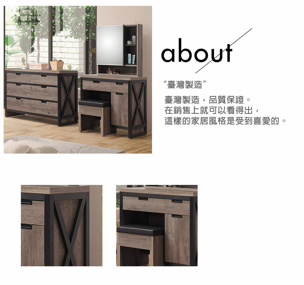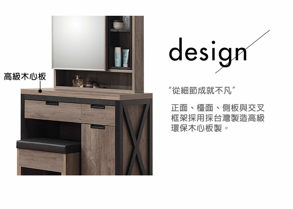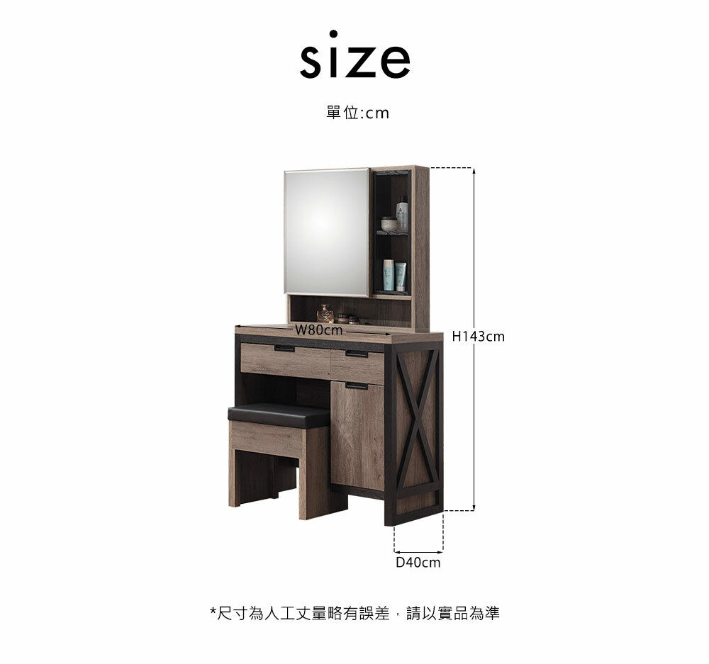 漢諾威2.7尺鏡台組(含椅)尺寸寬80x深40x高143cm