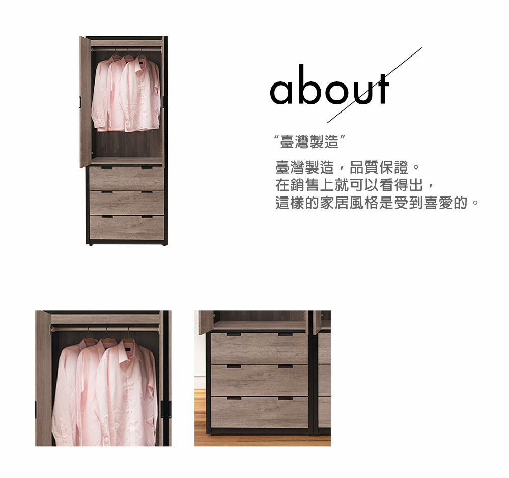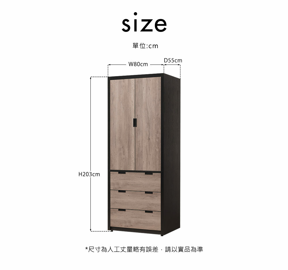 漢諾威3x7尺衣櫃尺寸寬80x深55x高203cm