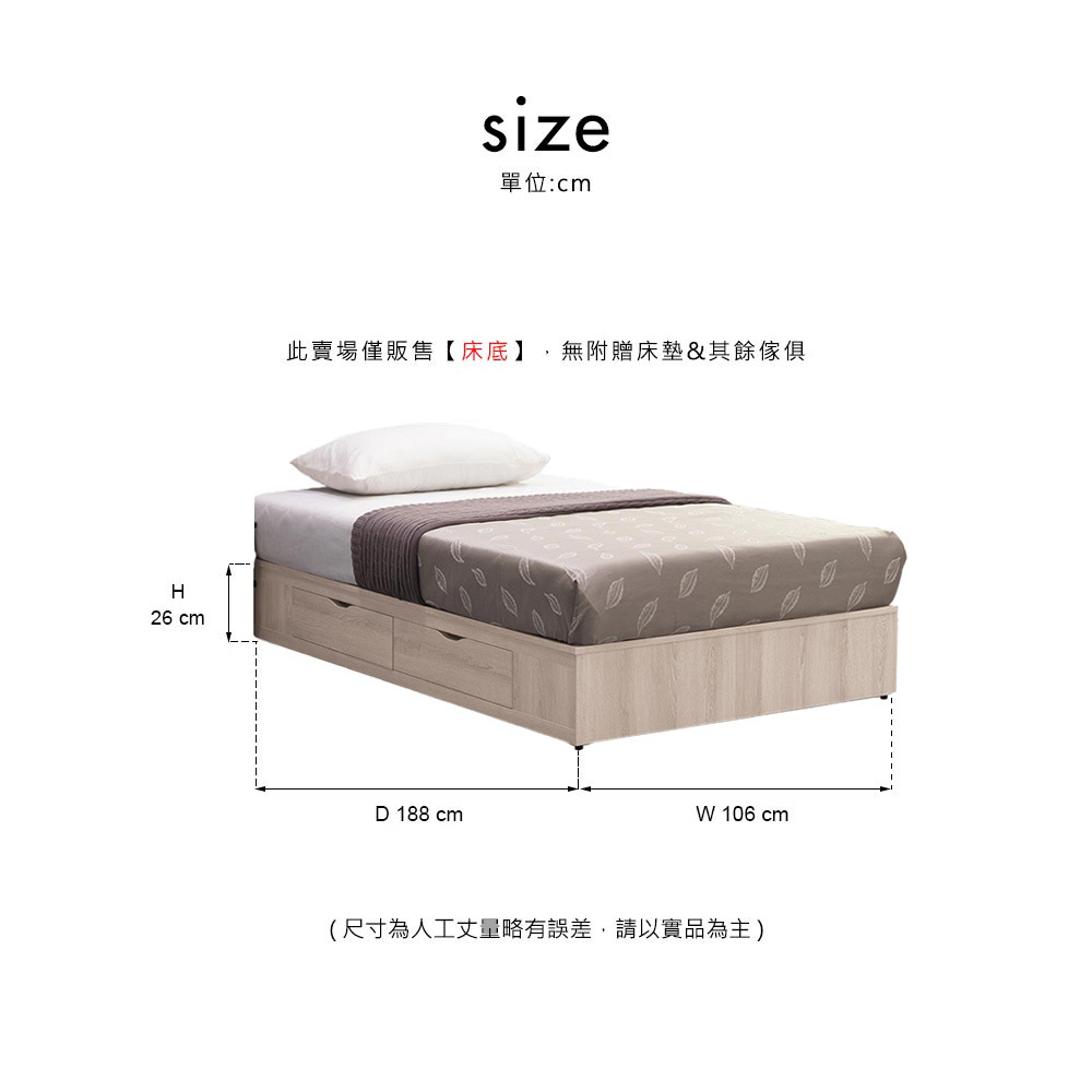 尺寸: 寬106x深188x高26cm