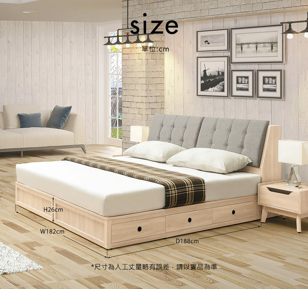 奧斯陸6尺六抽收納床底尺寸寬182x深188x高26cm