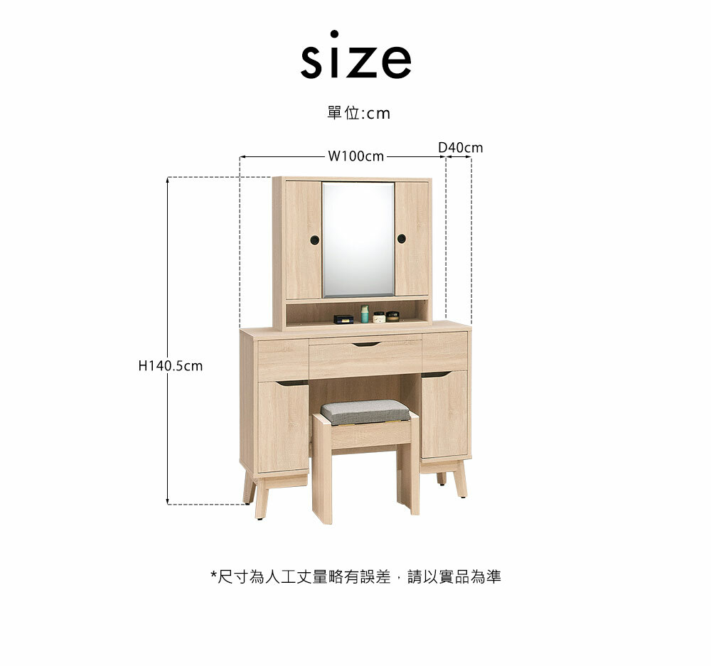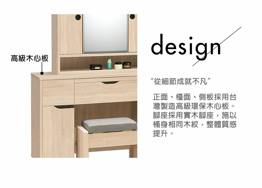 奧斯陸3.3尺旋轉鏡台組(含椅)尺寸寬100x深40x高140.5cm