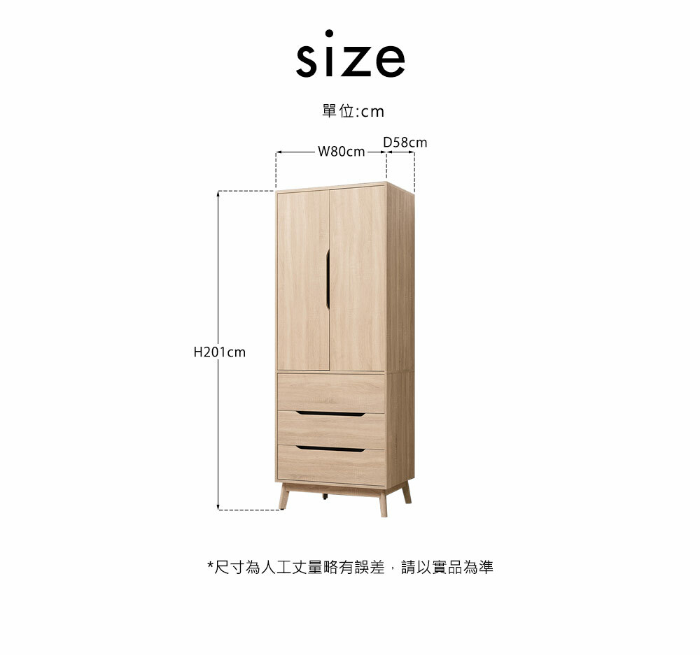奧斯陸3x7尺衣櫃尺寸寬80x深58x高201cm