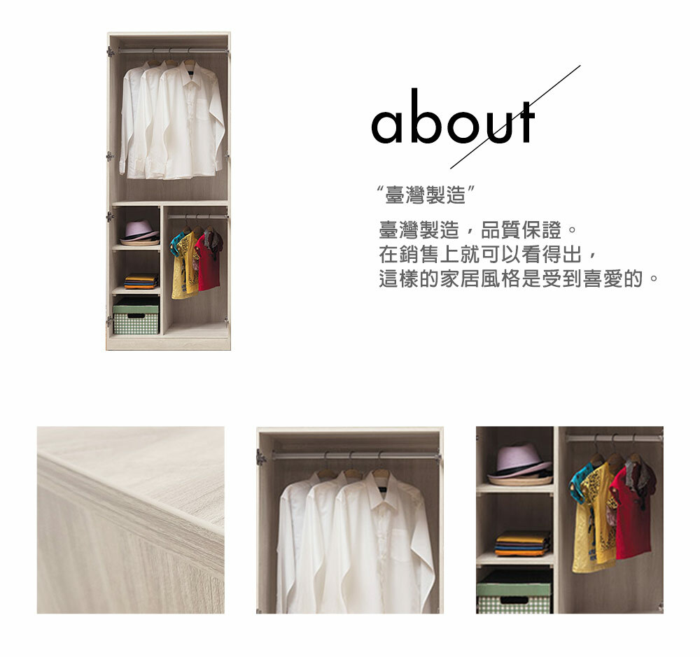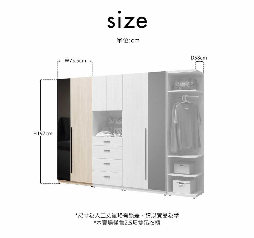 柏恩2.5尺雙吊衣櫃尺寸寬75.5x深58x高197cm