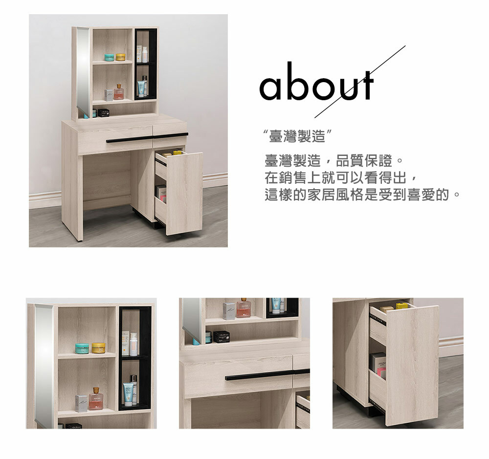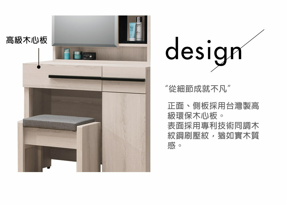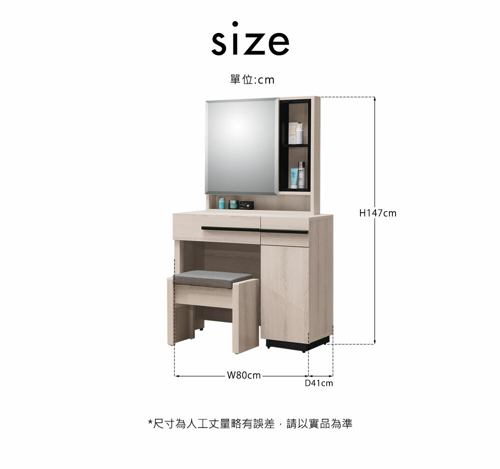瑪爾斯2.7尺鏡台組(含椅)尺寸寬80x深41x高147cm