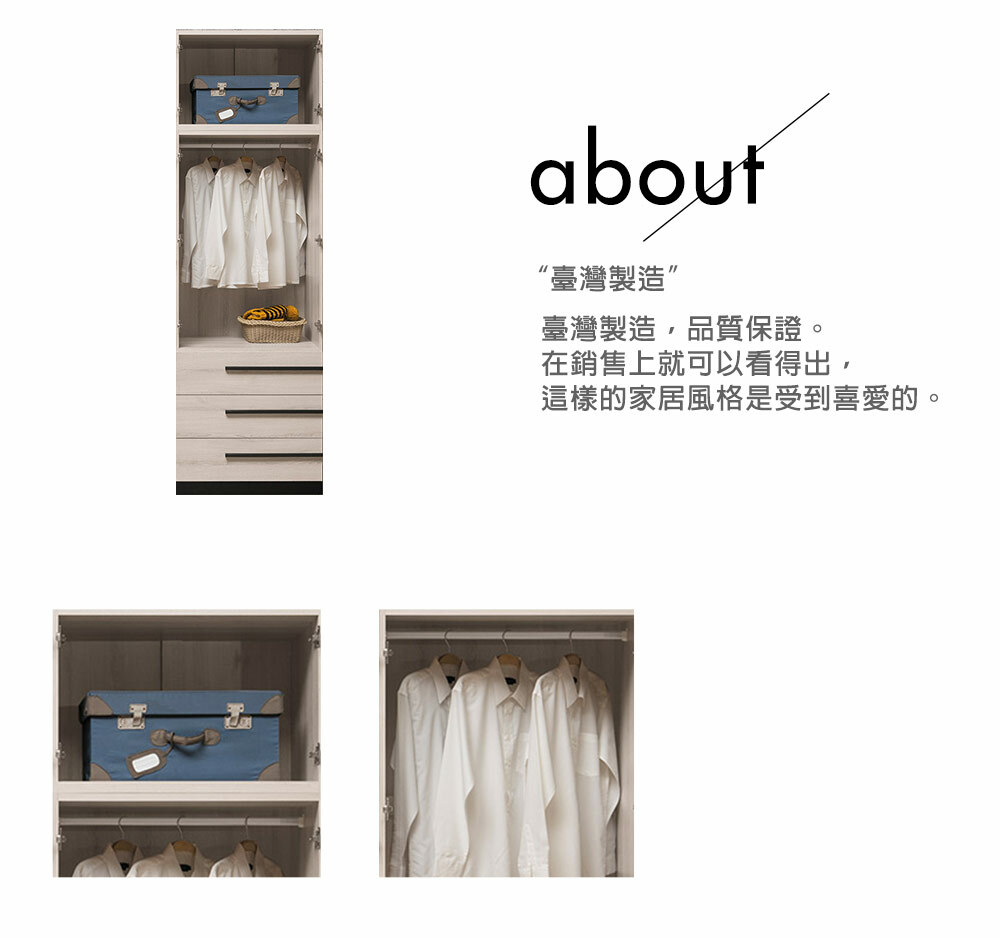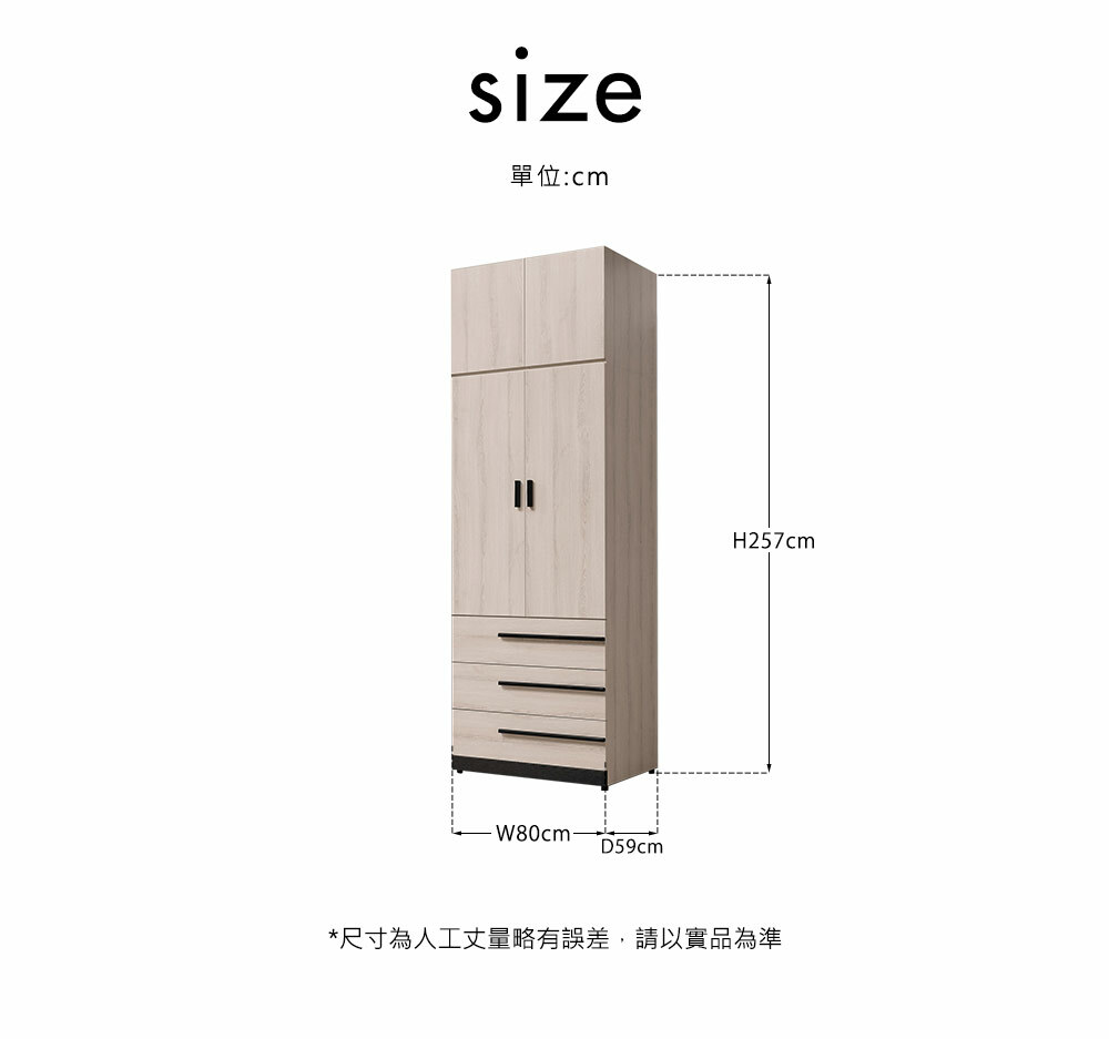 瑪爾斯2.7尺三抽高衣櫃尺寸寬80x深59x高202cm