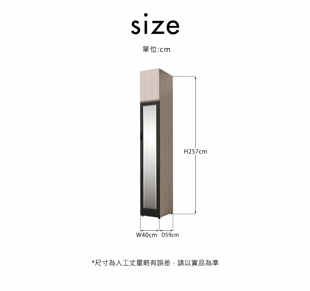 瑪爾斯1.35尺單吊高衣櫃尺寸寬40x深59x高257cm