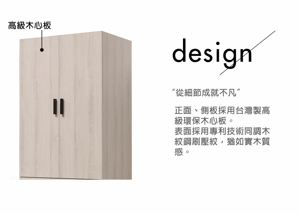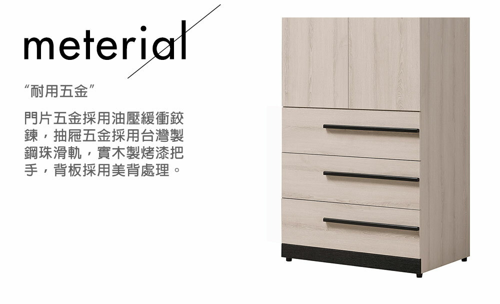 材質: 正面、側板採用高級環保木心板專利技術同調木紋鋼刷壓紋,猶如實木質感門片採用油壓緩衝鉸鍊抽屜五金採用台灣製鋼珠滑軌美背處理