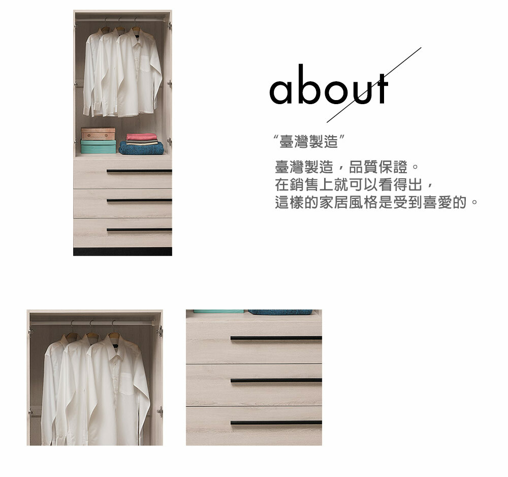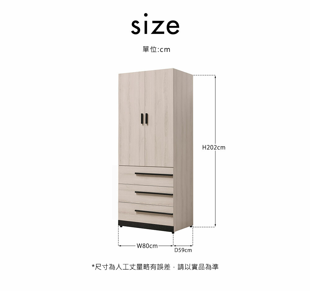 瑪爾斯2.7三抽衣櫃尺寸寬80x深59x高202cm