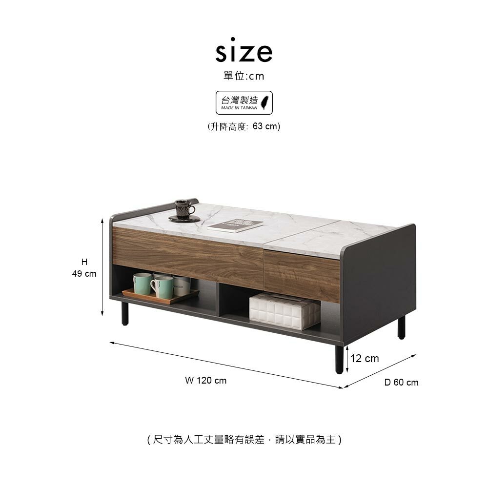 尺寸: 寬120x深60x高49cm(升降高度: 63CM)
