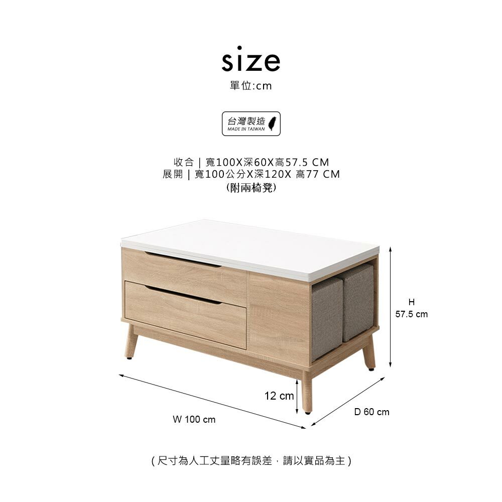 尺寸: 收合: 寬100x深60x高57.5cm展開: 寬100x深120x高77cm(