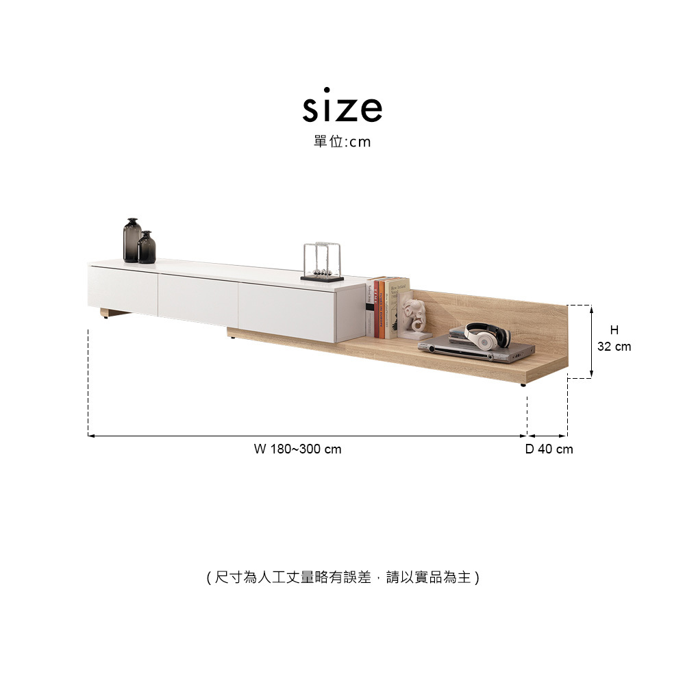 尺寸: 寬180x深40x高32cm(伸縮: 180~300cm)