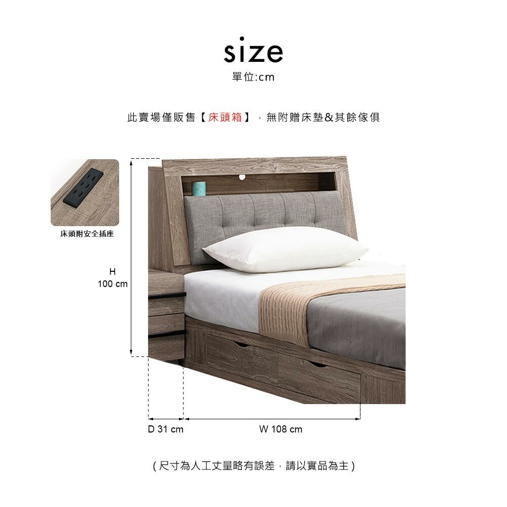 材質: 正面、檯面、側板與抽牆採用高級環保木心板專利技術同調木紋鋼刷壓紋,猶如實木質感床頭枕採台製防潑水亞麻布+高密度泡棉,經手中精緻車縫處理採用系統式1.0mm厚ABS材質封邊處理,質感細膩;延長使用週期,具環保可回收、耐衝擊、耐磨性、高鋼性特質抽屜採用台灣製鋼珠滑軌,門片採用油壓緩衝鉸鍊背板採用美背處理