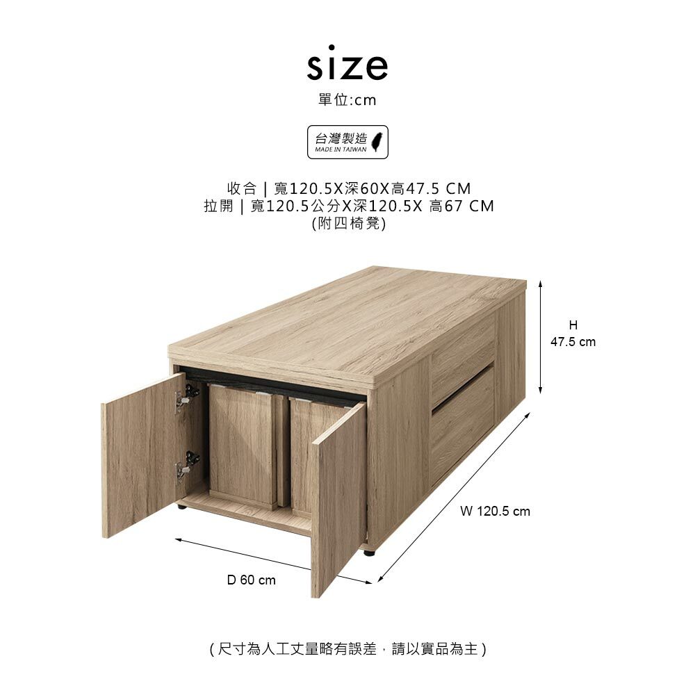 尺寸: 收合: 寬120.5x深60x高47.5cm展開: 寬120.5x深120.5x高67cm(
