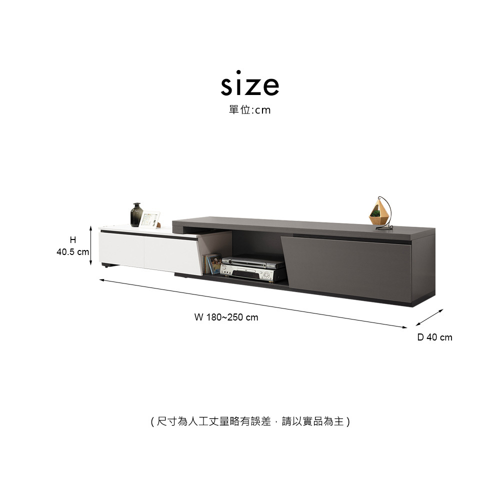 尺寸: 寬180x深40x高40.5cm(伸縮: 180~250cm)