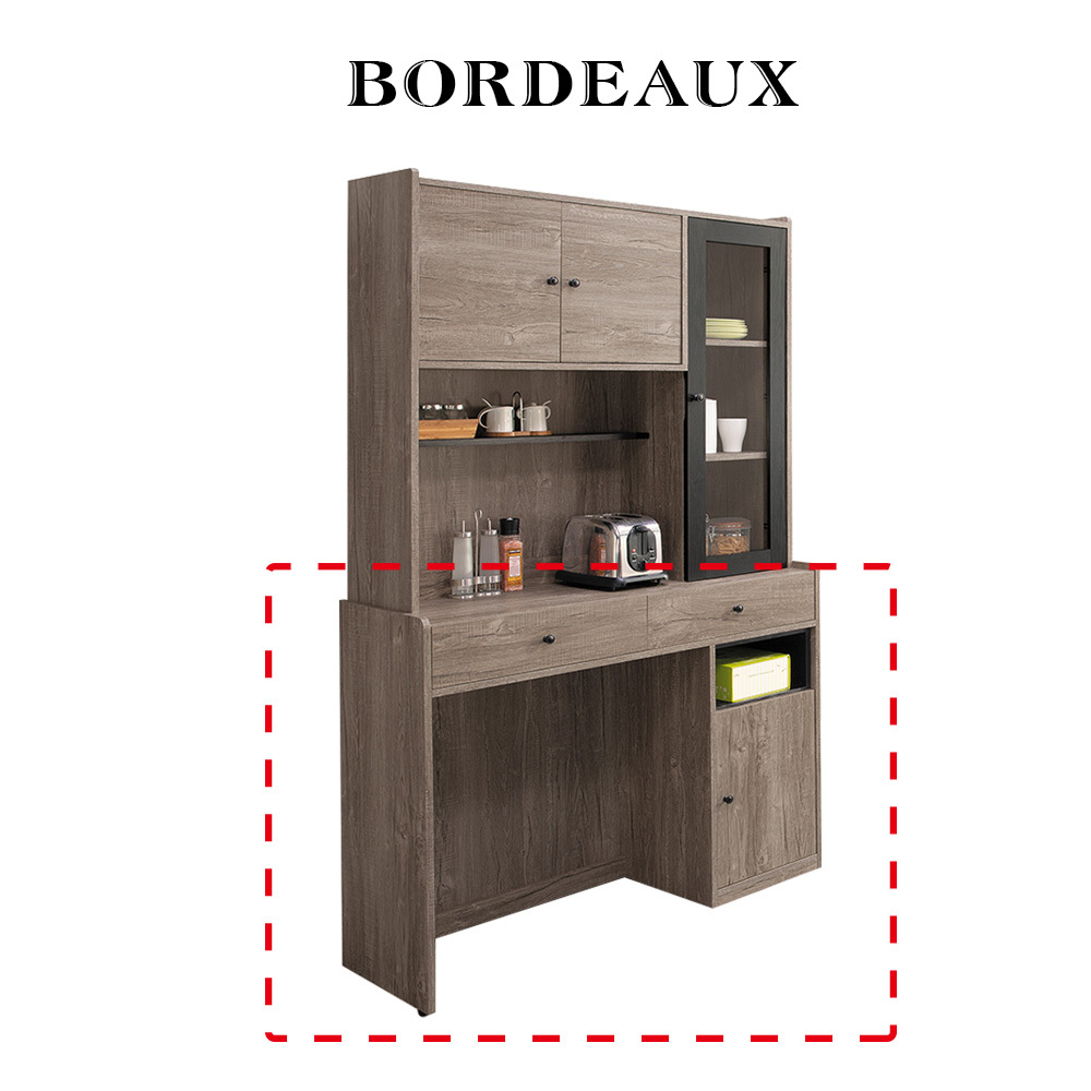 材質: 正面、檯面、側板木心板材質,PU耐磨塗裝木紋經特殊立體化處理,增添木紋立體美感採鋼珠滑軌,門片採緩衝鉸鍊