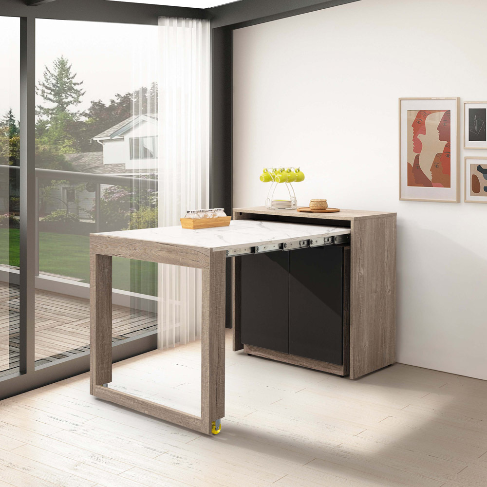 桌面採石紋美耐皿材質,具耐熱、耐磨特性