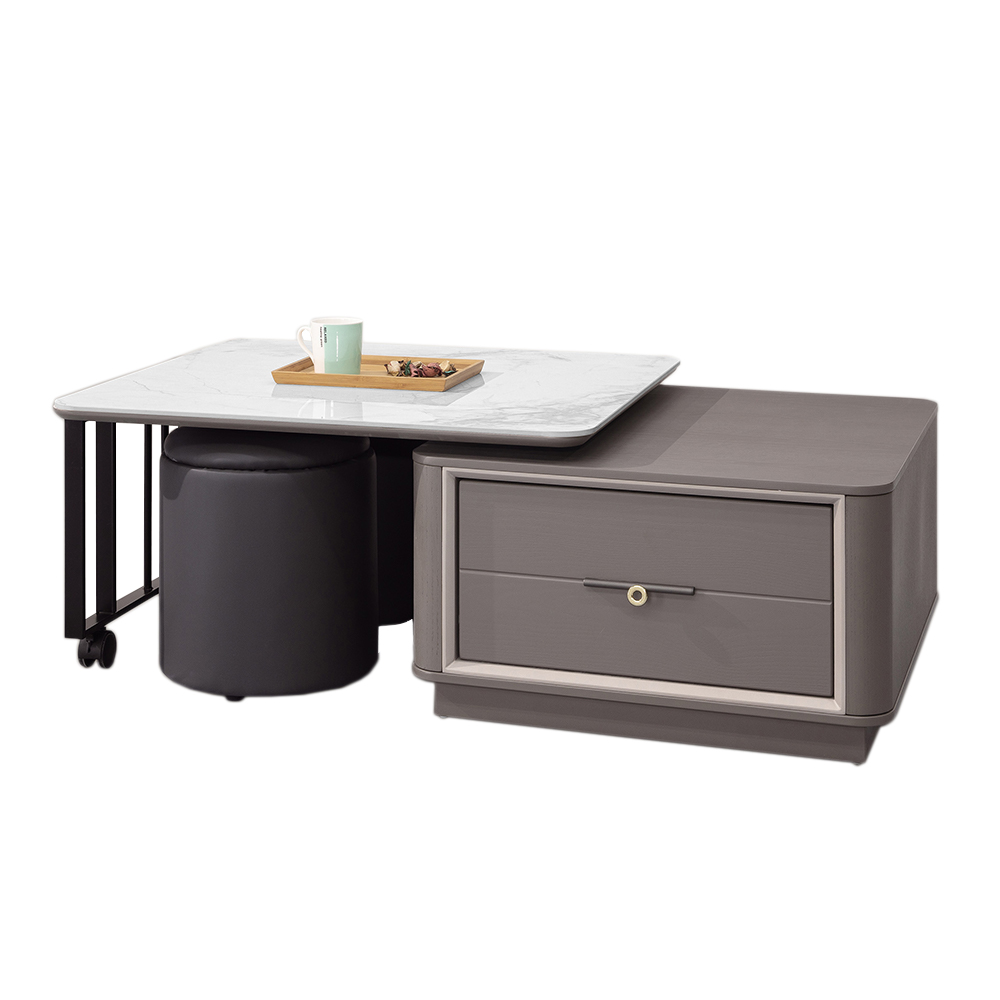 尺寸:德里克岩板旋轉茶几組(含2椅凳)(不拆賣)
