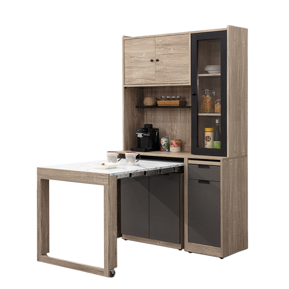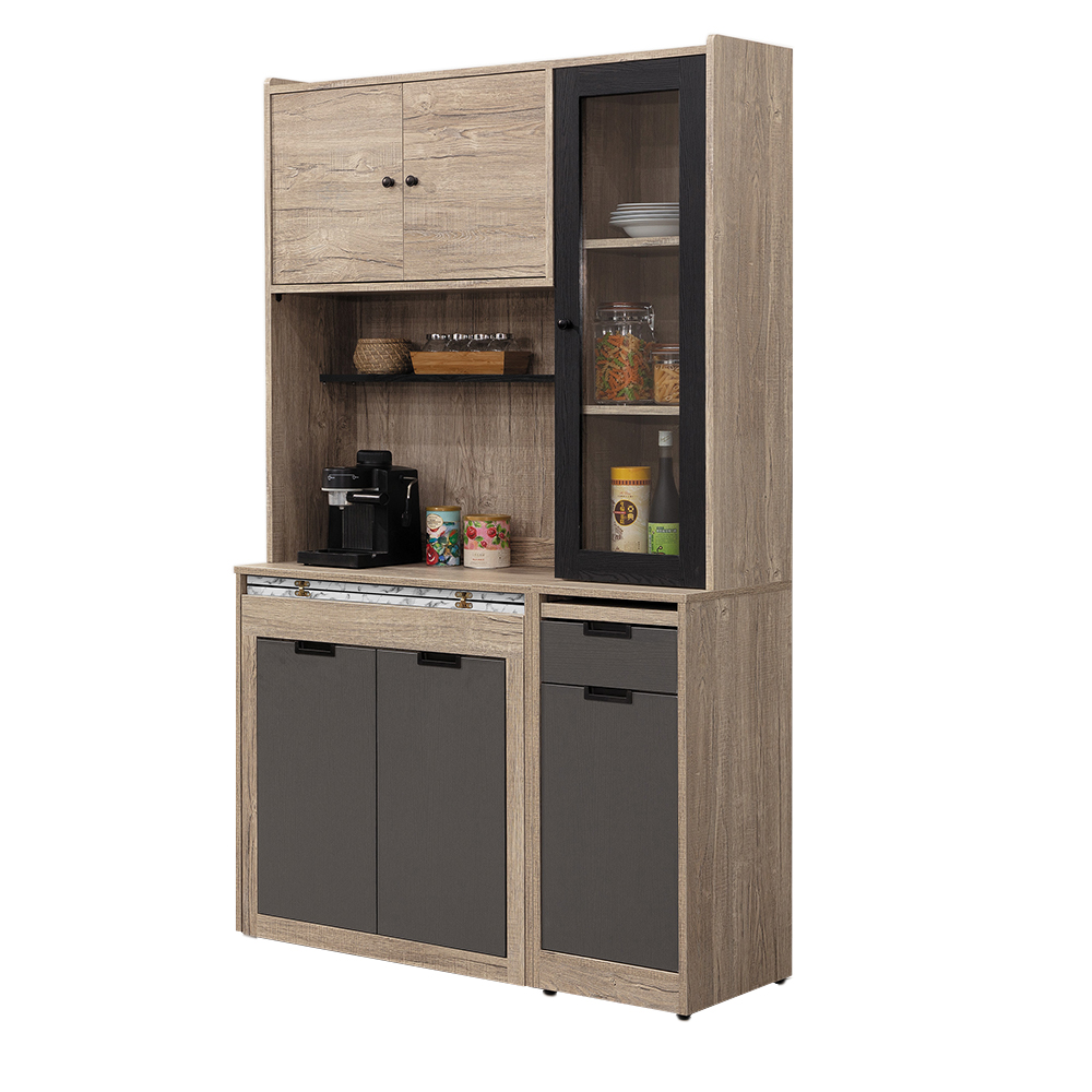 尺寸:雨果4尺功能桌收納櫃組(碳燒/灰)