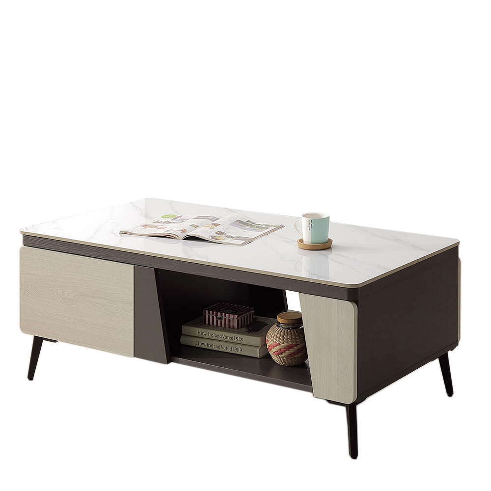 2. 桌面採12mm亮面雪山石岩板面,具耐磨、耐熱特性
